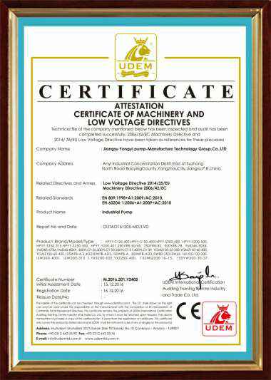 采用国际标准产品标志证书高温高压离心泵