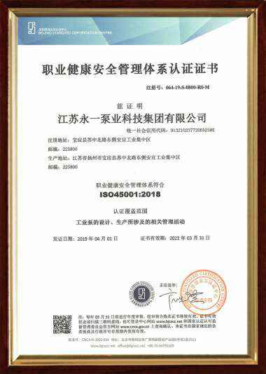 职业健康ISO45001认证证书(中文)